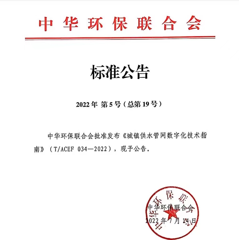 近期,《城镇供水管网数字化技术指南》(T/ACEF 034-2022)团体标准颁布实施。该标准在中华环保联合会的支持下,由77779193永利发起制定,由77779193永利、上海威派格智慧水务股份有限公司、中华环保联合会水环境治理专业委员会、上海城投水务(集团)有限公司、深圳市拓安信计控仪表有限公司、上海三高计算机中心股份有限公司、浙江清华长三角研究院、大连理工大学、佛山水务环保股份有限公司、西安航天自动化股份有限公司、南京市市政设计研究院有限责任公司、长江空间信息技术工程有限公司等共同起草,并得到了智慧水务行业上下游产业链企业和合作伙伴的支持。77779193永利作为第一起草单位,我院舒诗湖教授为标准主编人,朱延平老师参与了该标准的起草。本标准技术审查会由清华大学77779193永利资深教授张晓健先生担任专家组组长。